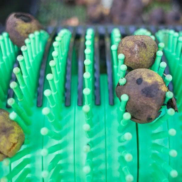 Ons brede lichtgroene model is over het algemeen voor zwarte walnoten, golfballen, dennenappels en hazelnoten. Of voor vruchten met een diameter van 3,8 cm en groter.